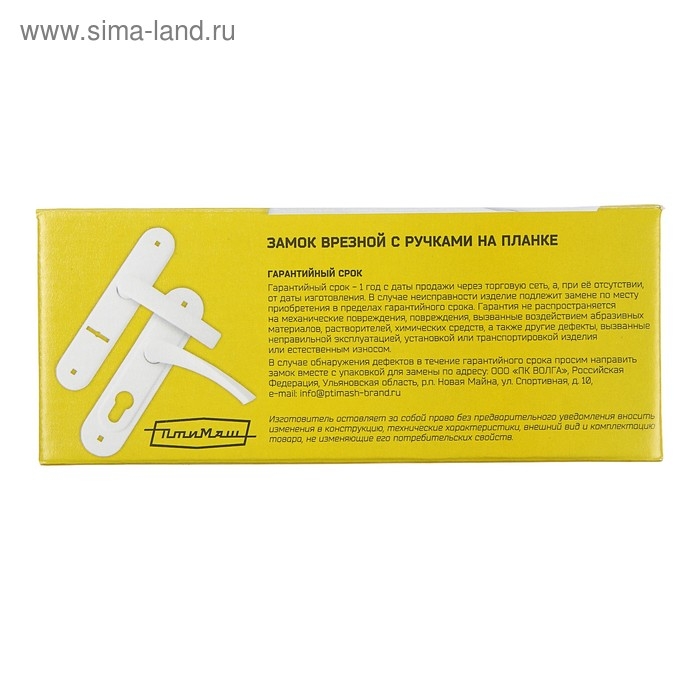 Замок врезной "Птимаш" 3В4-3.08, м/о 55 мм, с ручкой, 4 ключа, цвет медь