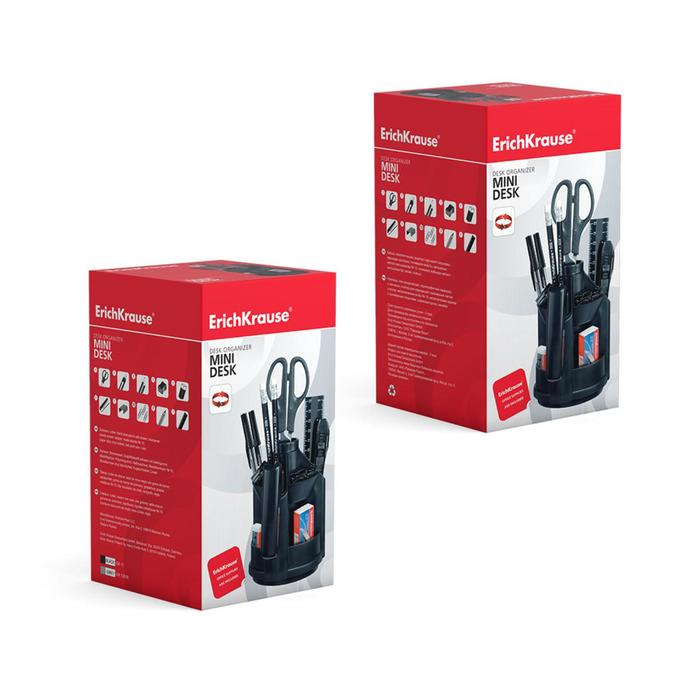 Набор настольный ErichKrause Mini Desk, 12 предметов, вращающийся, чёрный