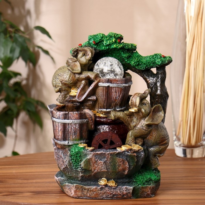 Фонтан настольный «Слоны с монетами», 19×28 см, с подсветкой