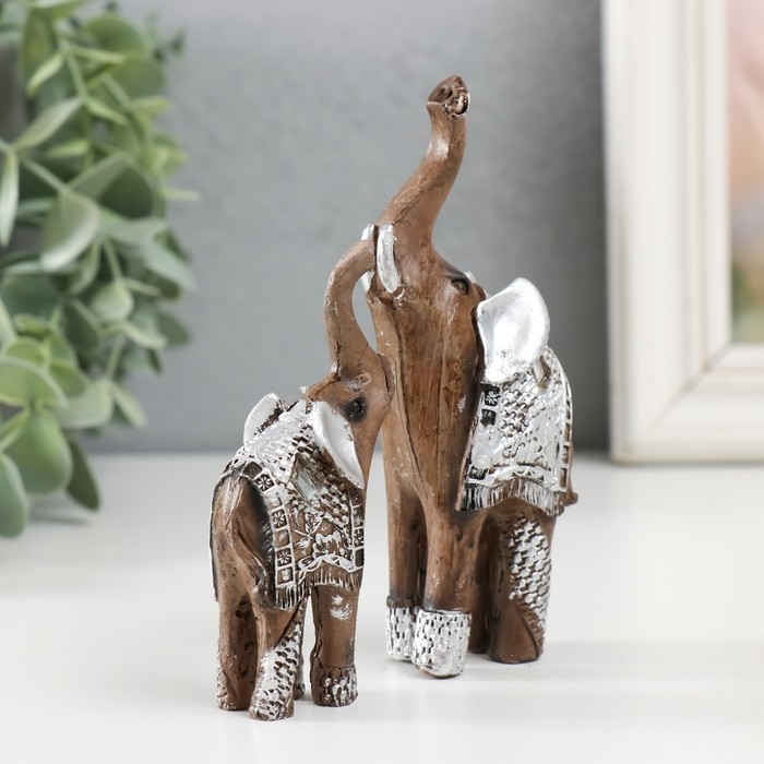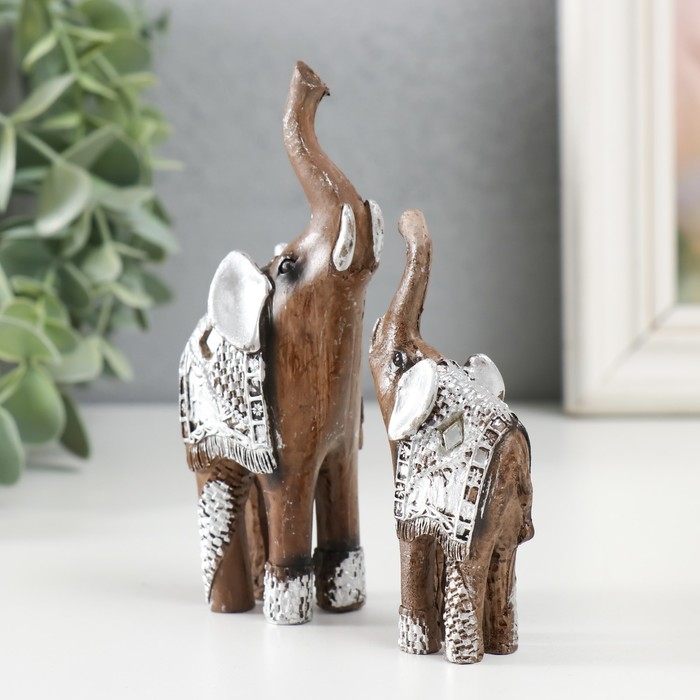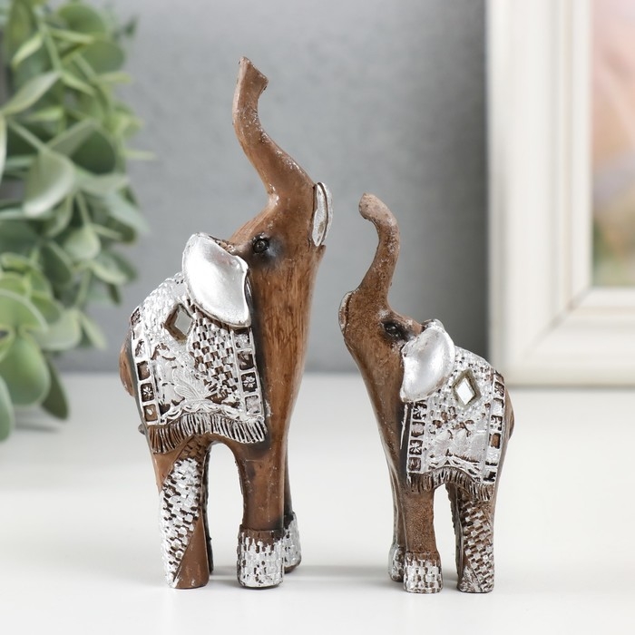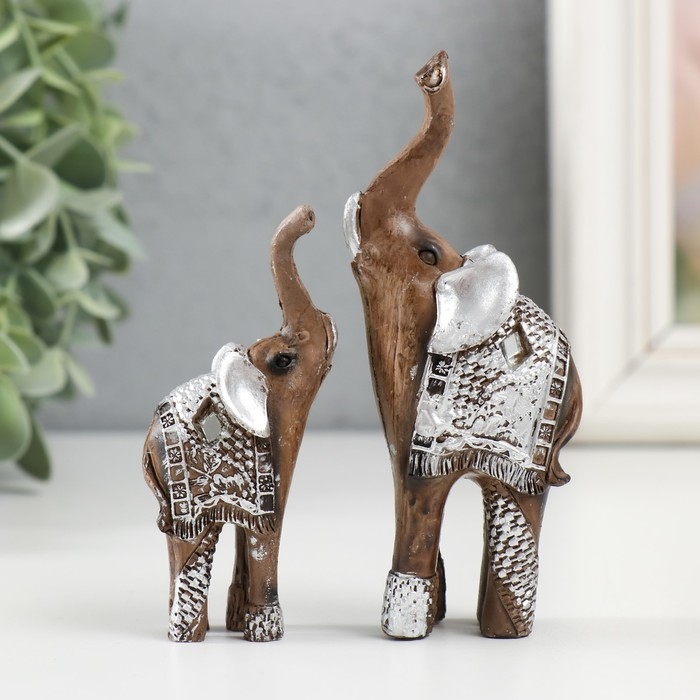 Набор фигурок полистоун «Два слоника в серебристой попоне», 2 шт., 11×8.3×3.5 см
