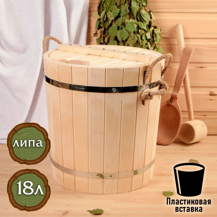 Запарник-ведро из липы, 10 л, пластиковая вставка, без крышки
