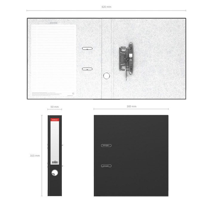 Папка-регистратор А4, 50 мм, ErichKrause Standard, бумвинил, с этикеткой на корешке, нижний металлический кант, черная