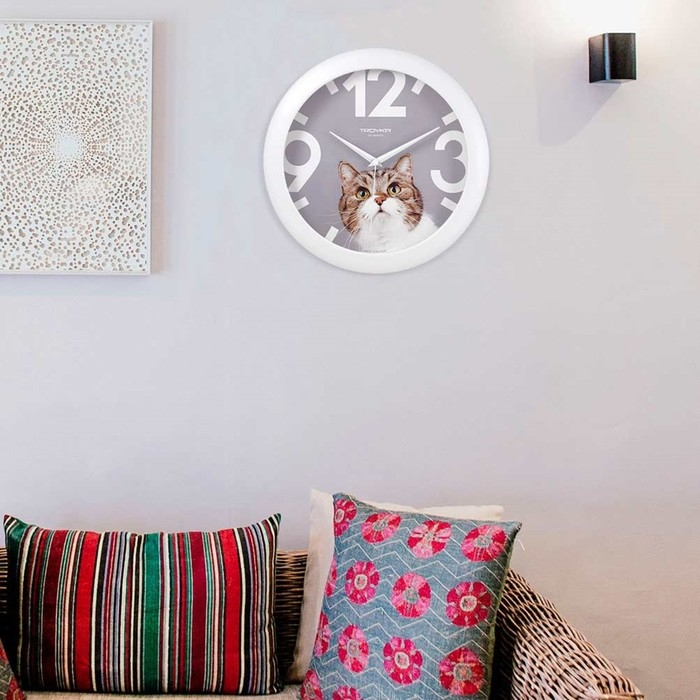 Часы настенные, серия: Животный мир, "Кот", d=29 см, белый обод
