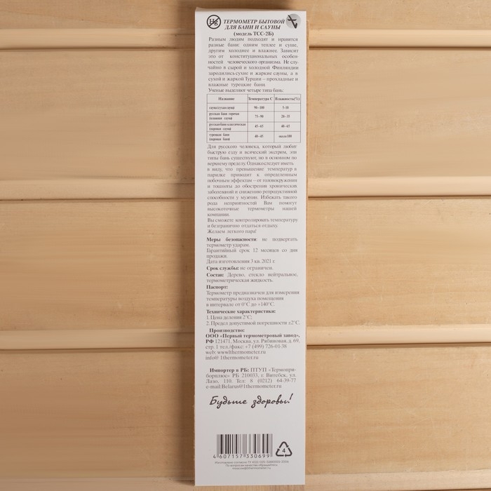 Термометр для бани и сауны ТСС-2Б "Баня" в пакете