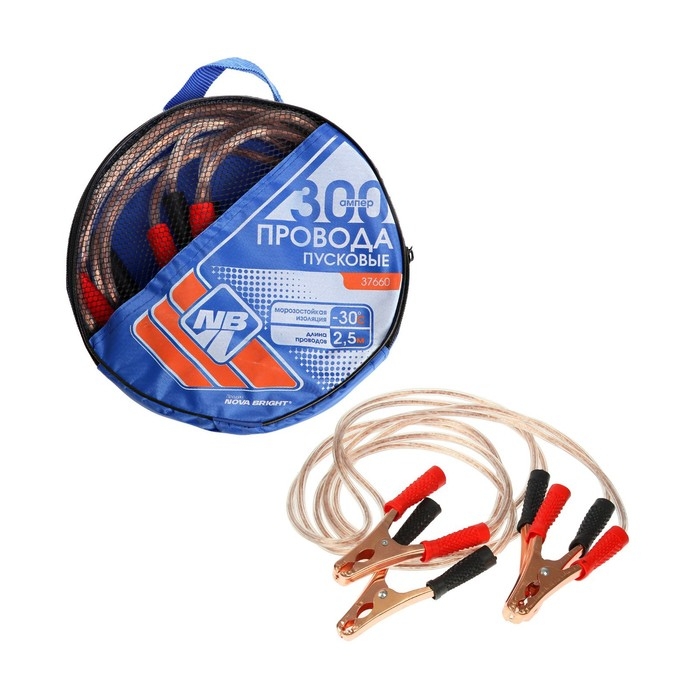 Пусковые провода Nova Bright, 300 А, с прозрачной изоляцией, в сумке, 2.5 м