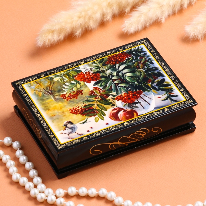 Шкатулка «Рябина на окне», 10×14 см, лаковая миниатюра