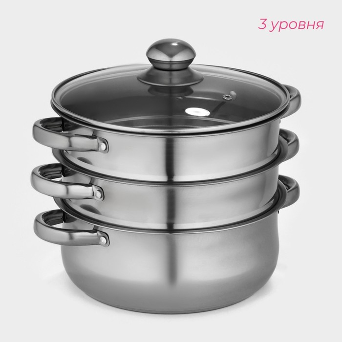 Мантоварка - пароварка из нержавеющей стали Доляна «Классика», d=24 см, 3 уровня, общий объём — 7,9 л
