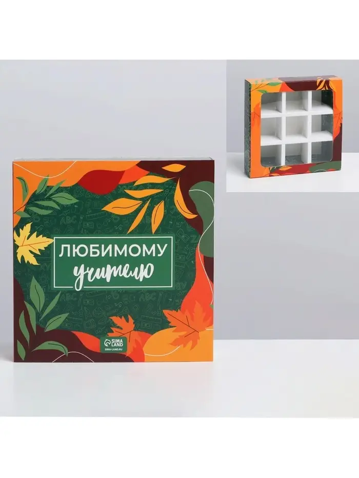 Коробка для конфет, кондитерская упаковка, 9 ячеек, «Любимому учителю» 14.5 х 14.5 х 3.5 см