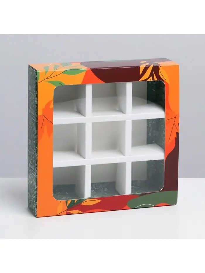 Коробка для конфет, кондитерская упаковка, 9 ячеек, «Нежность внутри», 14.7 х 14.7 х 3.5 см