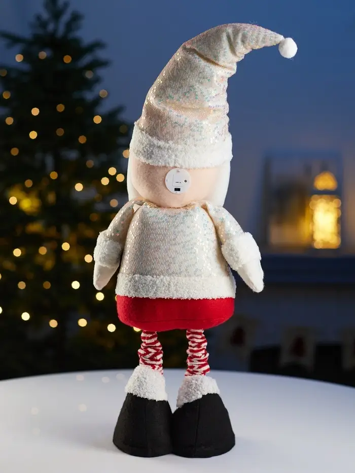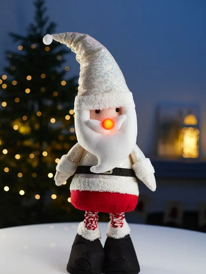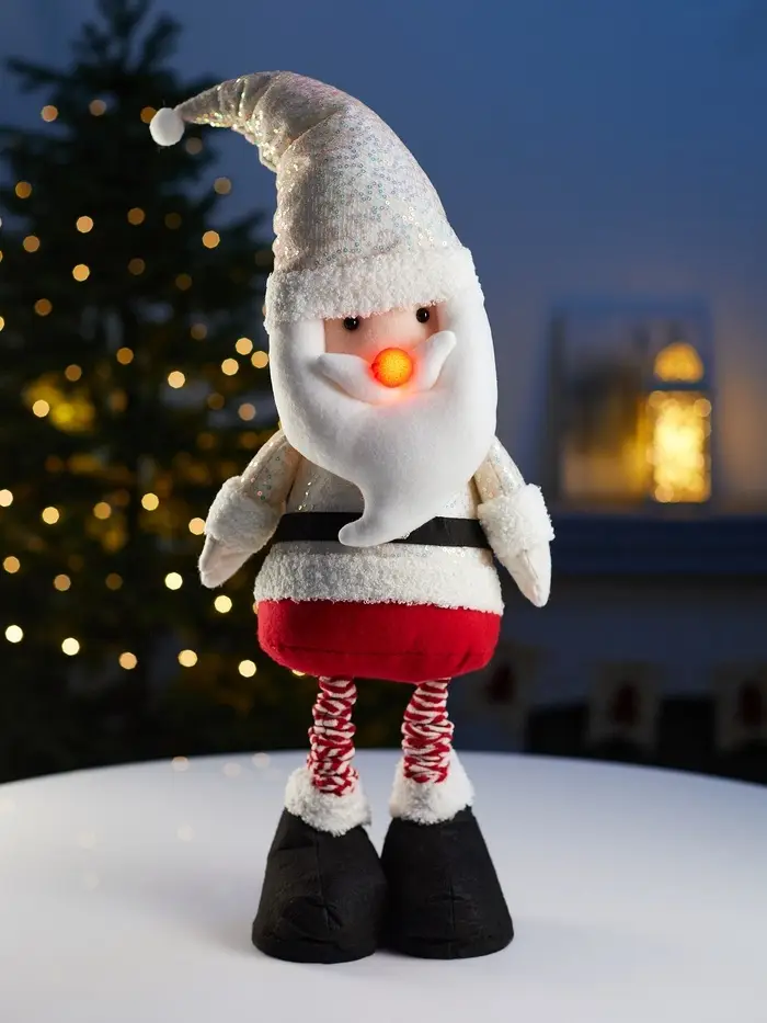 Фигура текстиль «Дед Мороз» 55-84 см, телеск-е ножки, 1LED, LR1130х3 (в компл.), Т/БЕЛЫЙ
