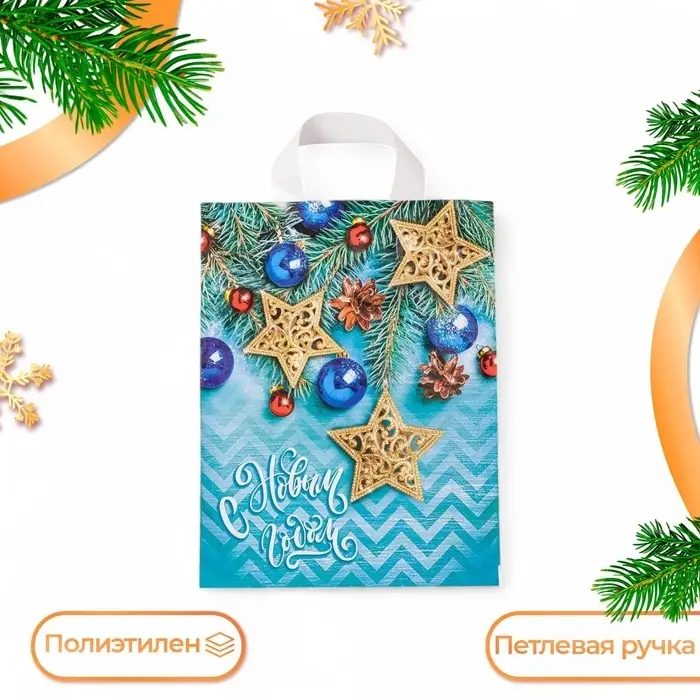 Пакет подарочный «Новогодняя лазурь», полиэтиленовый с петлевой ручкой, 28×35 см