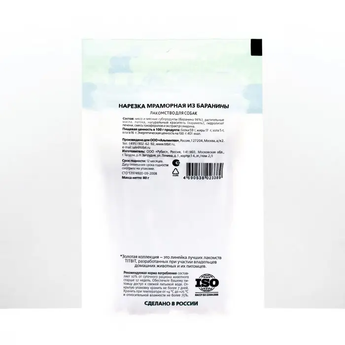 Лакомство TitBit "Золотая коллекция" для собак нарезка мраморная из баранины, 80 г