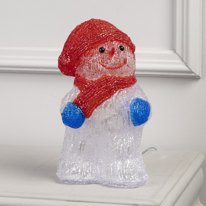 Светодиодная фигура «Снеговик в шарфе» 13 × 25 × 15 см, акрил, 30 LED, 220 В, свечение белое