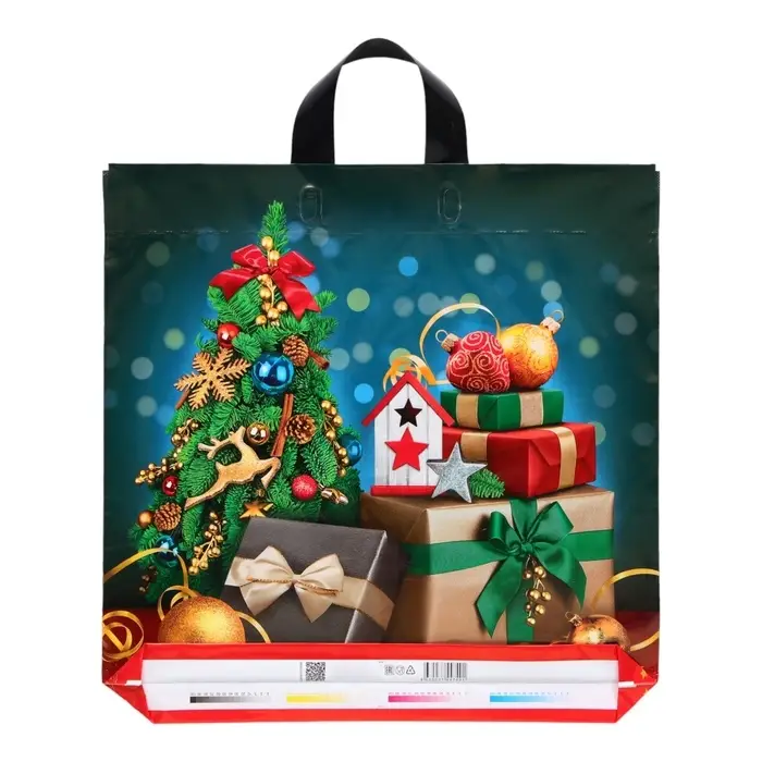 Пакет новогодний, полиэтиленовый с петлевой ручкой – это идеальное решение для упаковки подарков в преддверии Нового года. Этот пакет изготовлен из прочного и качественного полиэтилена, который обеспечивает надежную защиту содержимого от влаги и пыли.
