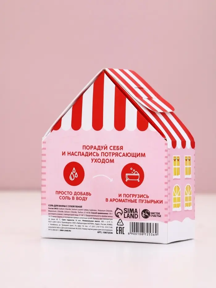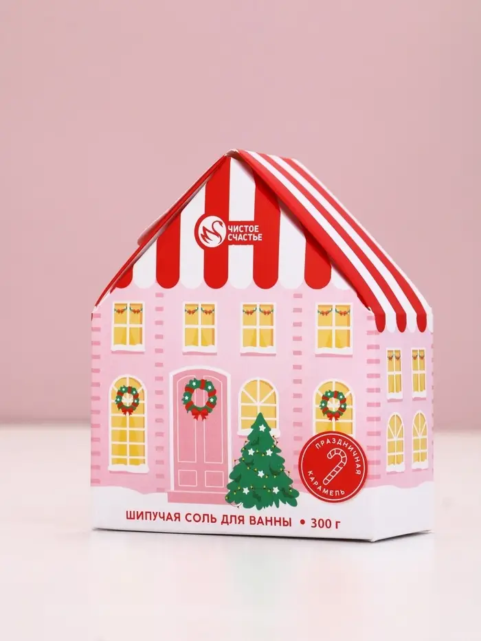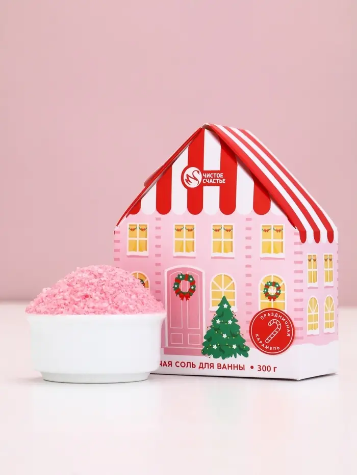 Чистое счастье соль для ванны с сухой пеной "Волшебный домик", праздничная карамель, 300 гр