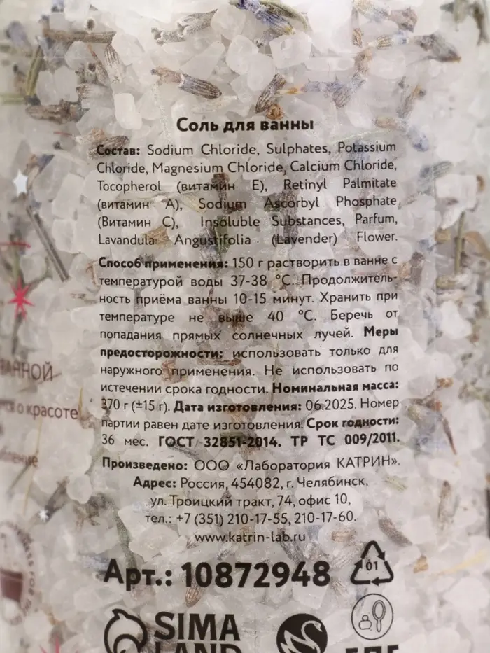 Соль для ванны с лепестками лаванды, 370 гр