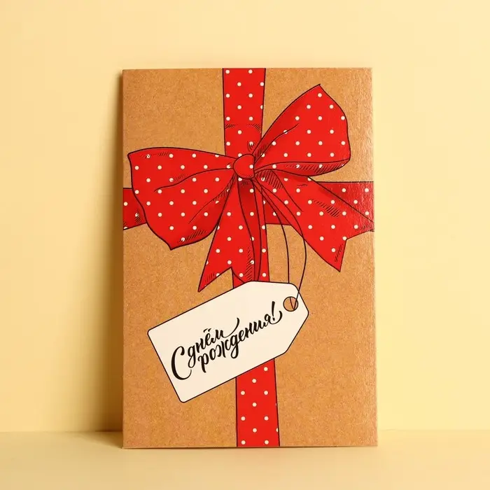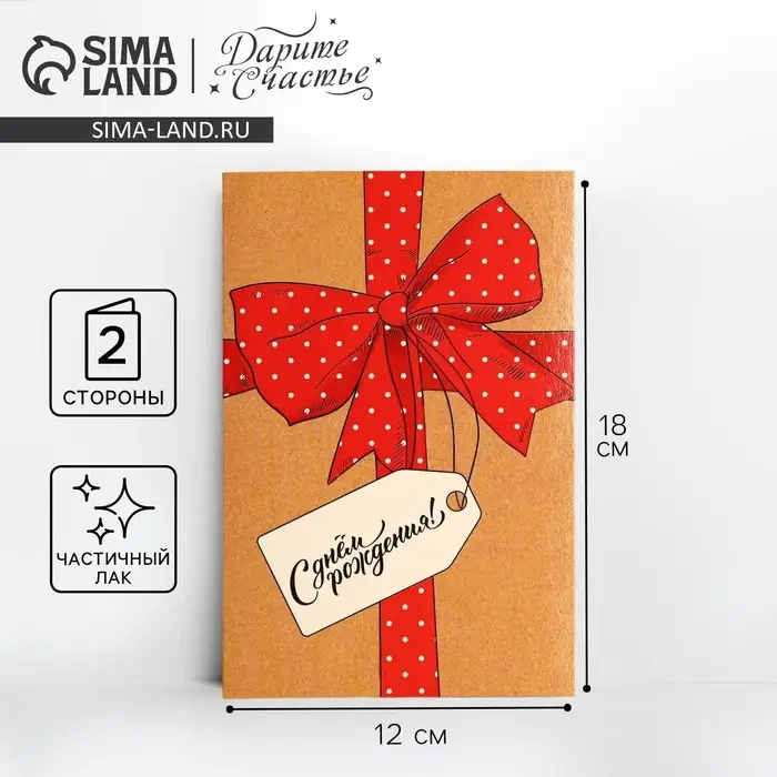 Открытка «С Днем Рождения», большой бант, частичный УФ-лак, 12 × 18 см