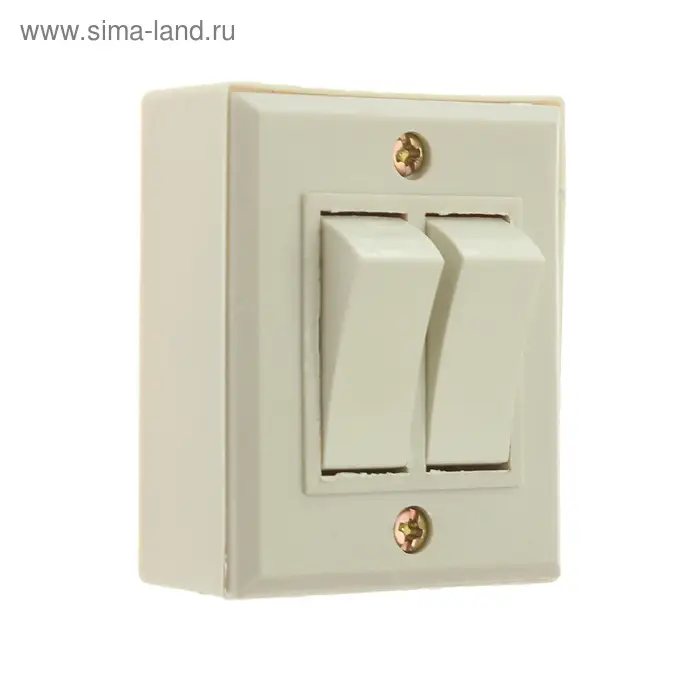 Выключатель "Топ", 10 А, 220 В, 2 клавиши, накладной, белый