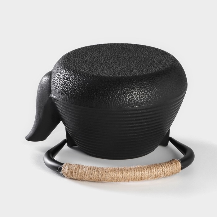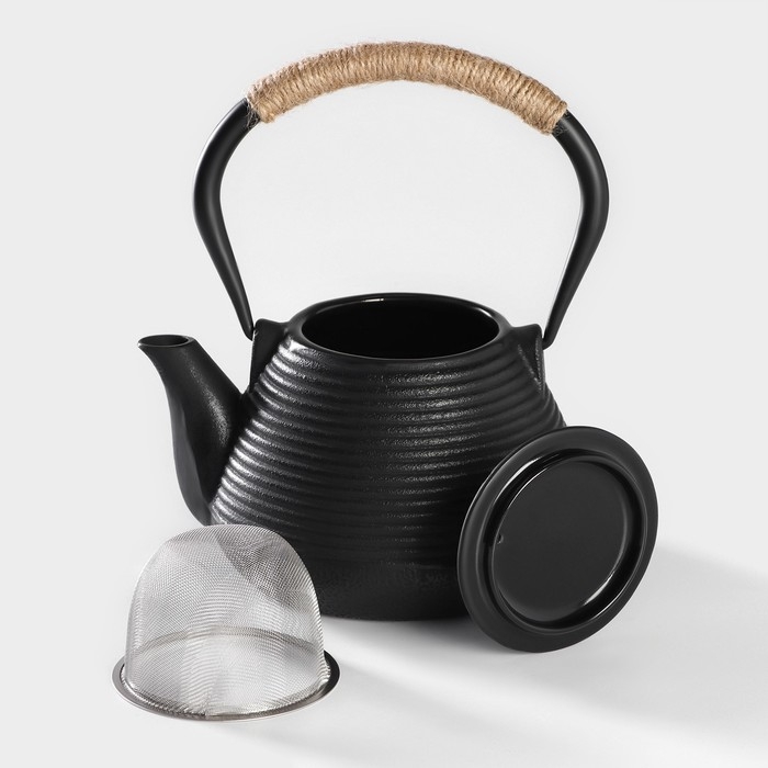 Чайник для плиты Доляна «Чёрный тигр», 700 мл, с ситом, чугун, эмалированное покрытие внутри, индукция, цвет чёрный