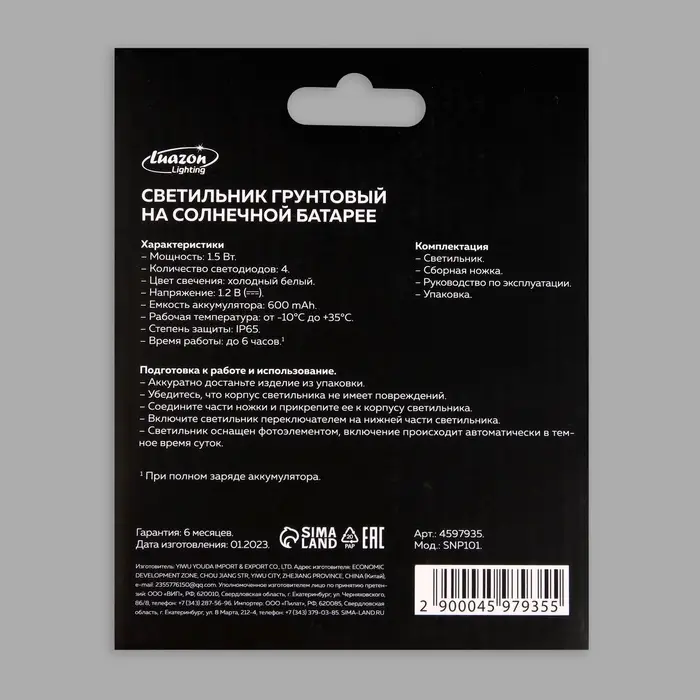 Садовый светильник на солнечной батарее, 4 LED, свечение белое