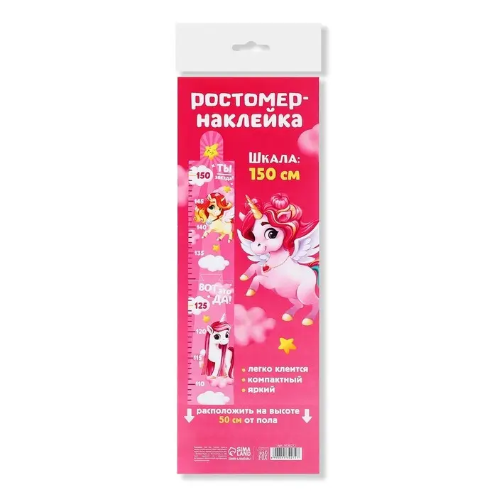 Наклейка - ростомер 150 см «Единорог»