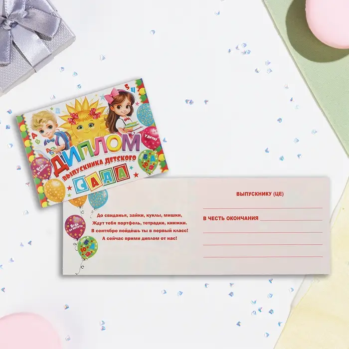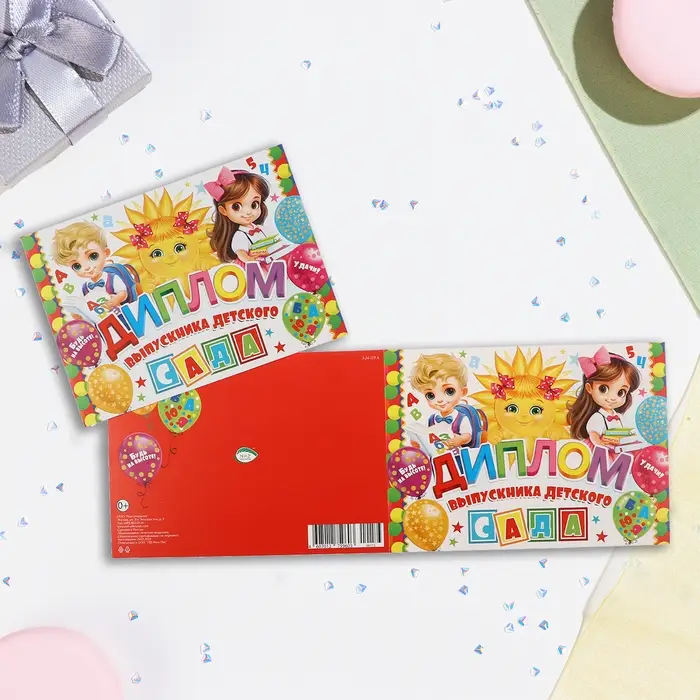 Диплом и медаль на выпускной детского сада «Дети», 21×14 см, 250 г/м²