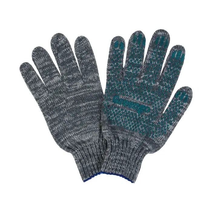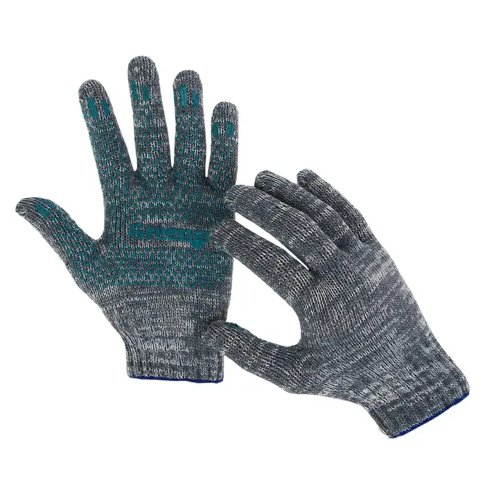 Перчатки садовые, хб, вязка 7 класс, 6 нитей, размер 9, с ПВХ точками, серые, Greengo