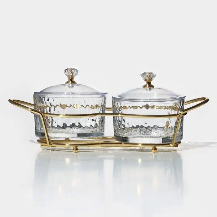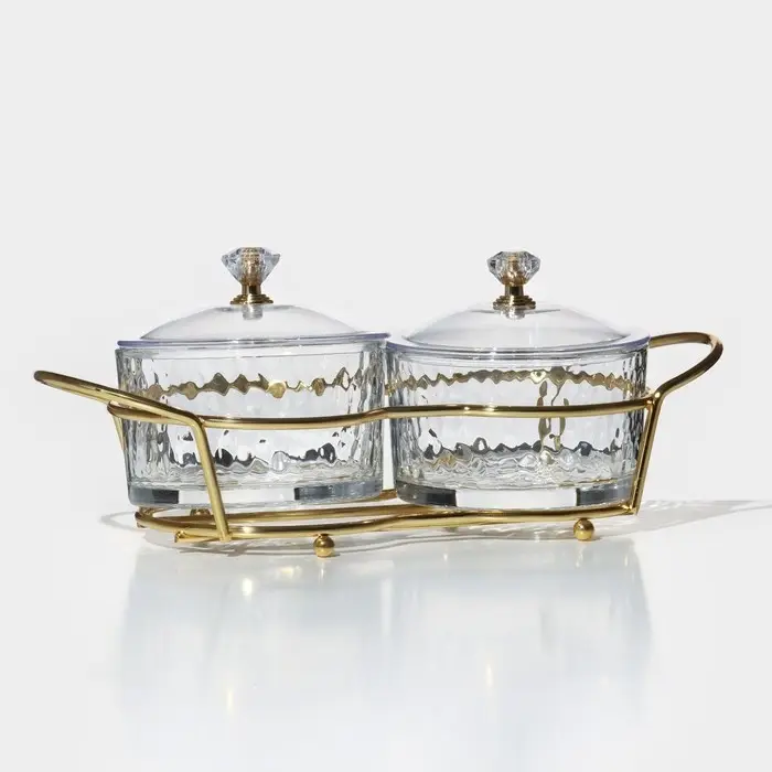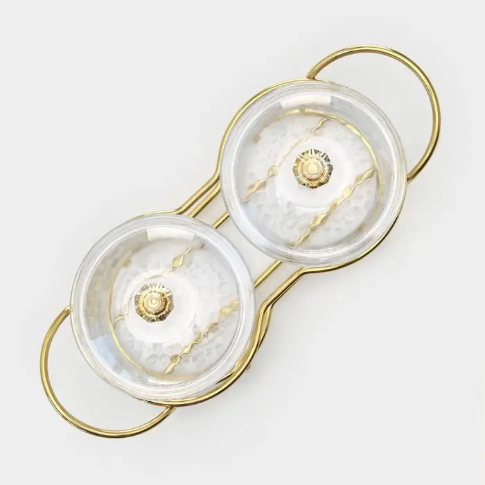 Набор стеклянных конфетниц «Богема», на подставке 24×9,5×8,5 см, 2 шт, цвет металла золотой