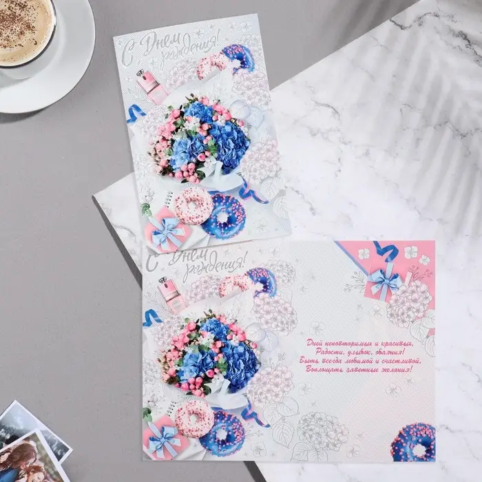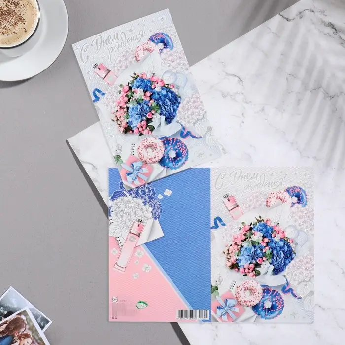 Открытка "С Днём Рождения!" конгрев, тиснение, белый фон, 38х29 см