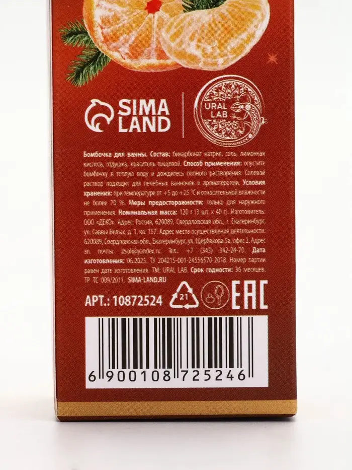 Бомбочки для ванны с ароматом мандарина, 3×40 г, URAL LAB