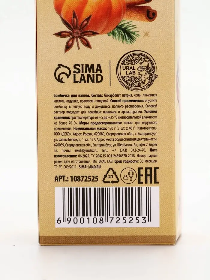 Бомбочки для ванны с ароматом тыквенного штруделя, 3×40 г, URAL LAB