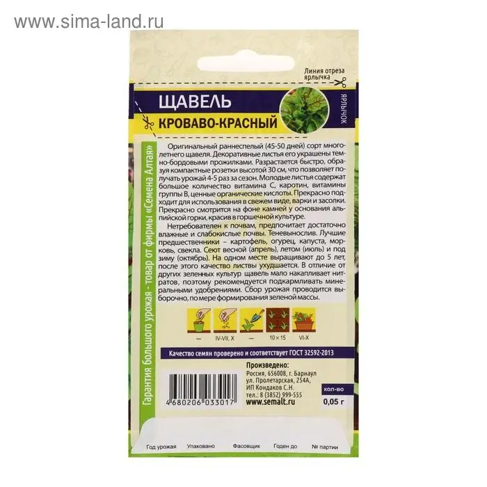 Семена Щавель, кроваво-красный, ц/п, 0,05 г