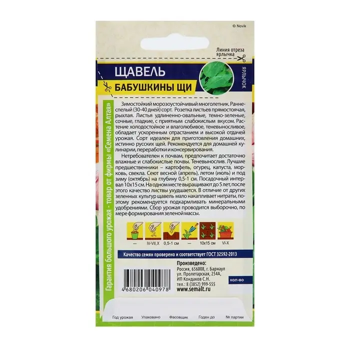 Семена Щавель "Бабушкины Щи", ц/п, 0,5 г