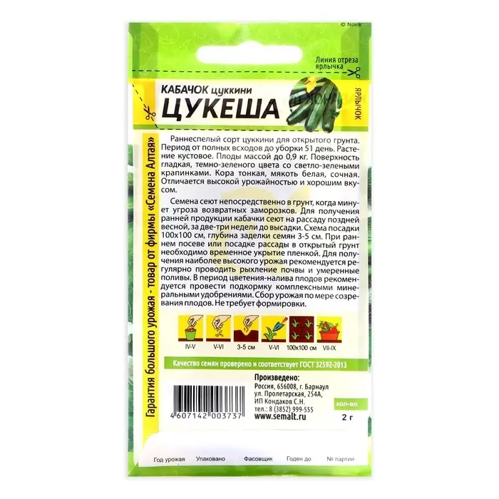 Семена Кабачок "Цукеша-цукини", Сем. Алт, ц/п, 2 г