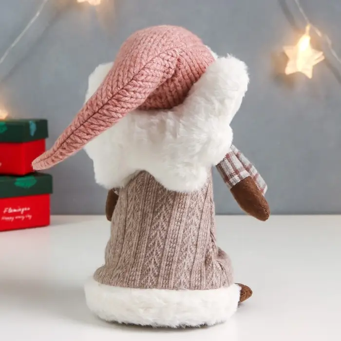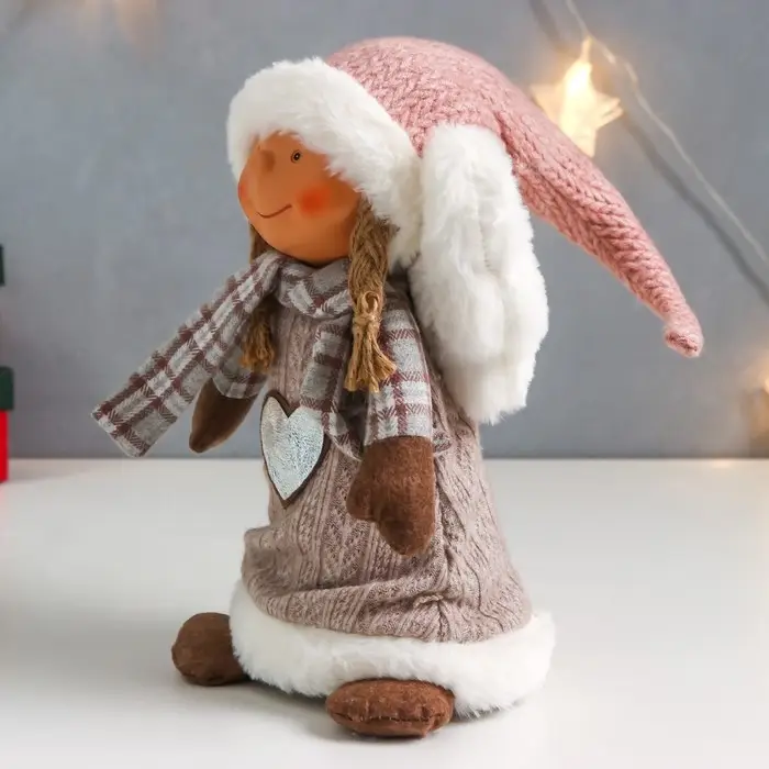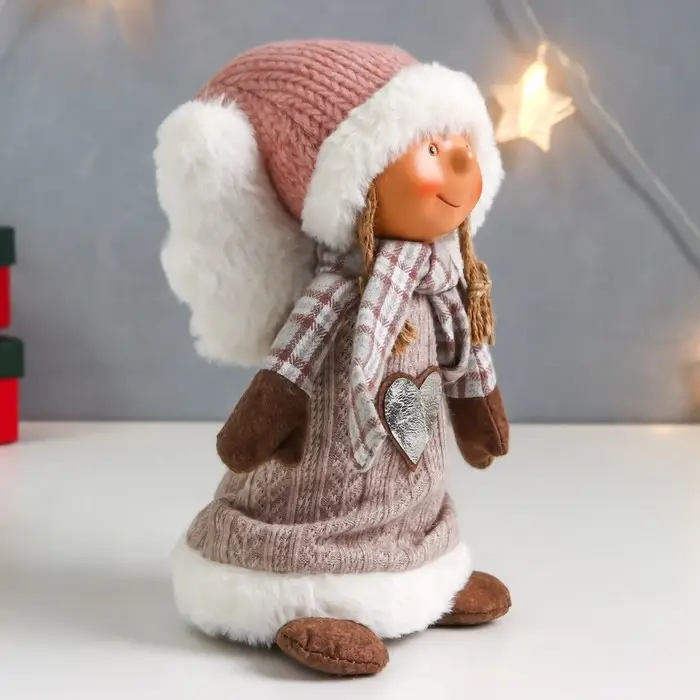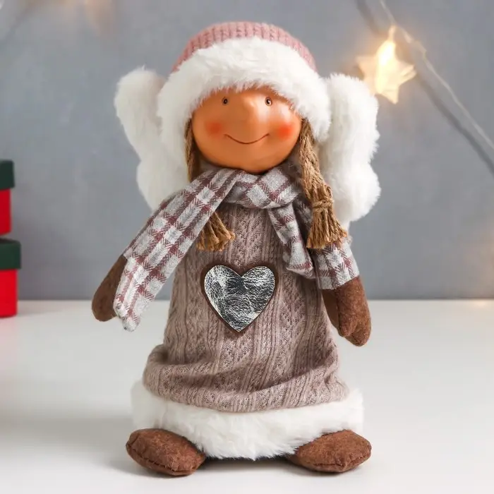 Кукла интерьерная "Ангелочек Марфуша в бежевом вязаном платье с сердечком" 35х15х11 см