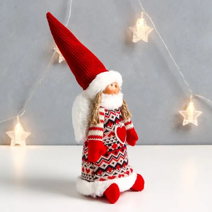 Кукла интерьерная "Ангелочек Марфуша в красном платье с узорами и сердечком" 33х13х10 см