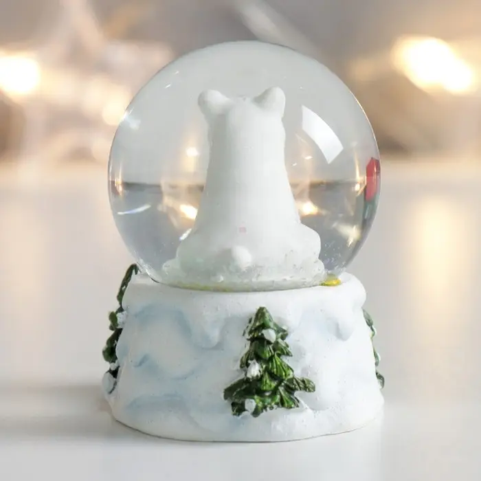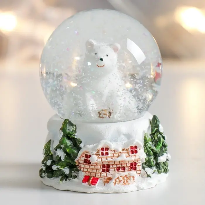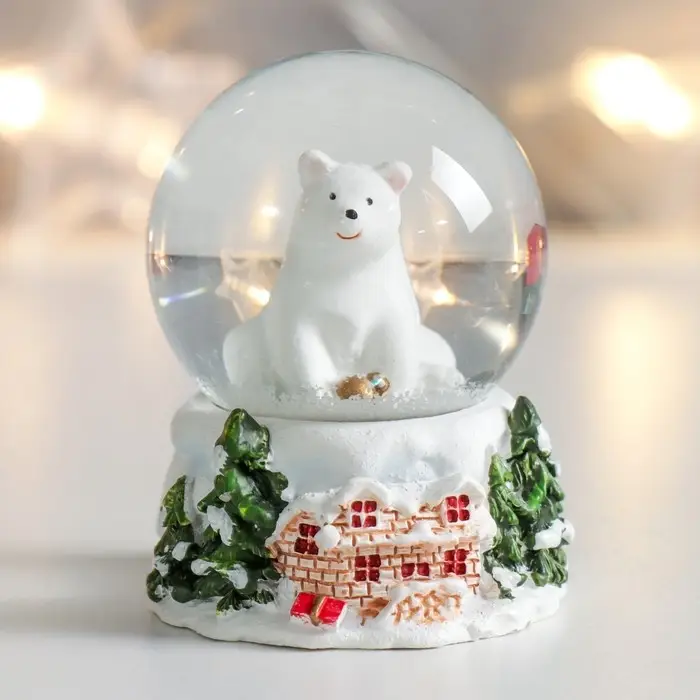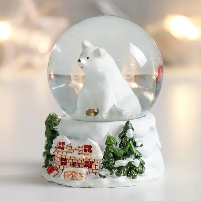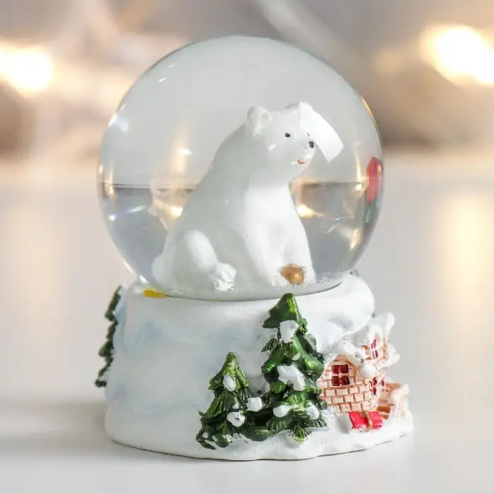 Сувенир полистоун водяной шар "Белый мишка на крыше дома" 4,5х4,5х6,5 см