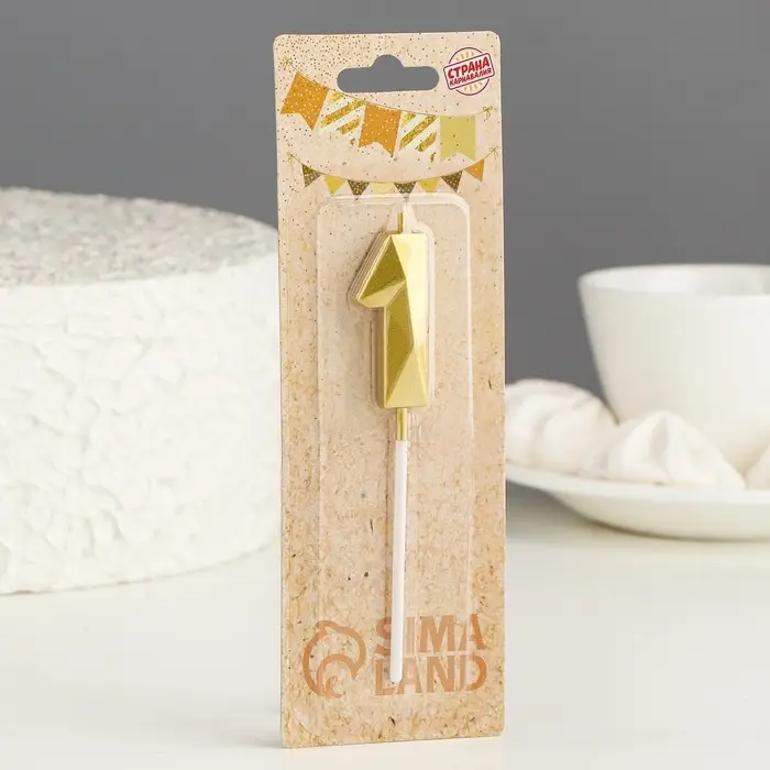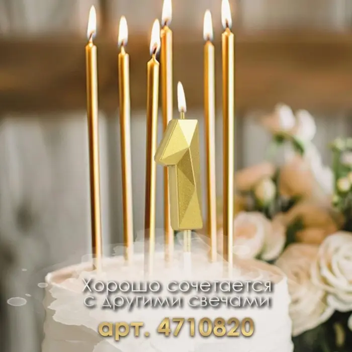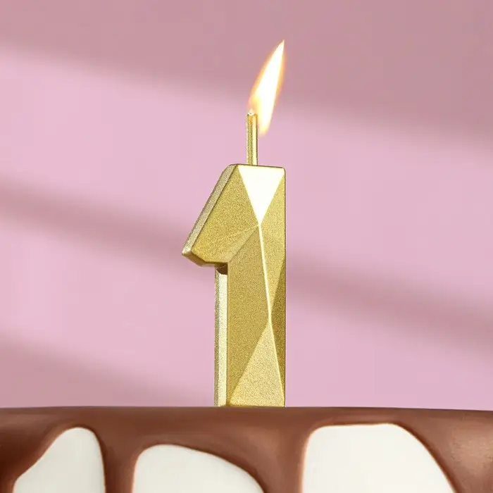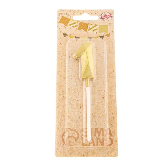 Свеча в торт на шпажке «Алмаз», цифра 1, золотая, 5 см