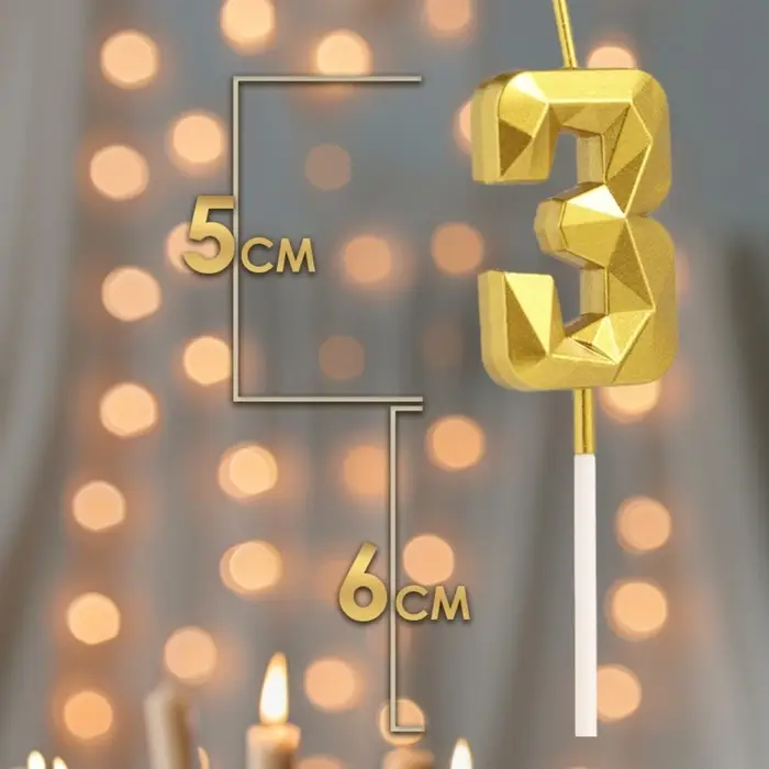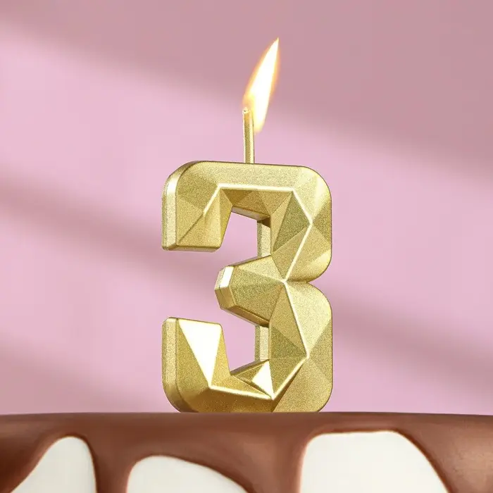 Свеча в торт на шпажке «Алмаз», цифра 3, золотая, 5 см