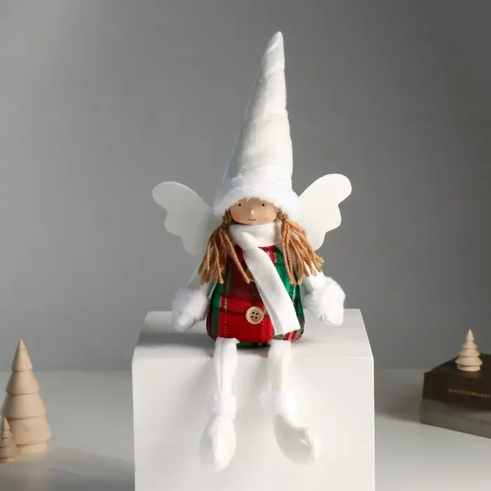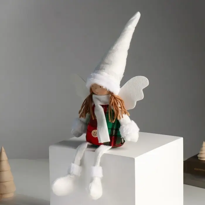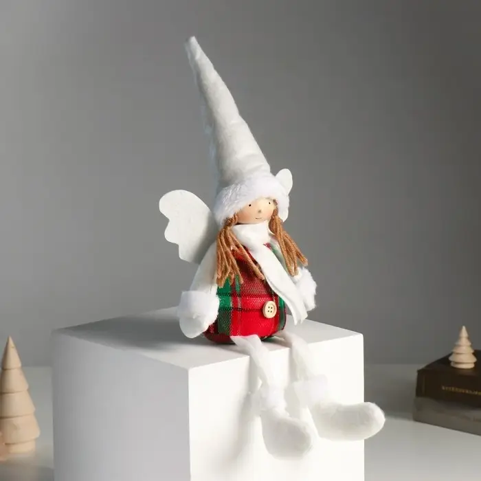 Кукла интерьерная "Ангелочек в красно-зелёном сарафане" длинные ножки 16х8х40 см