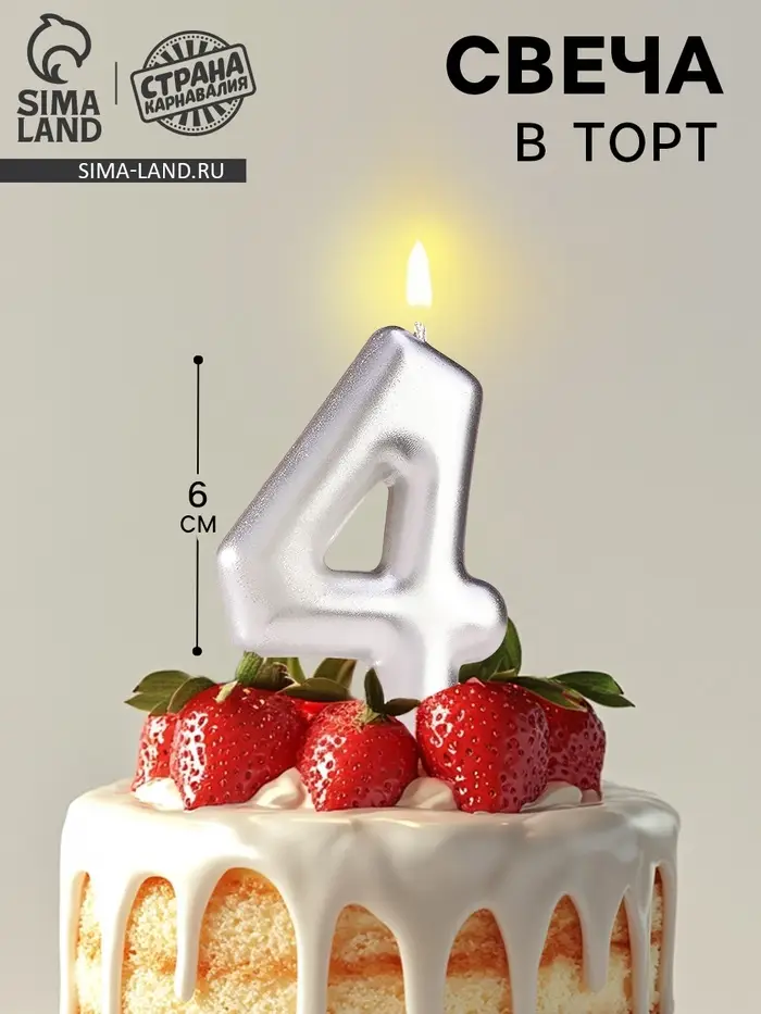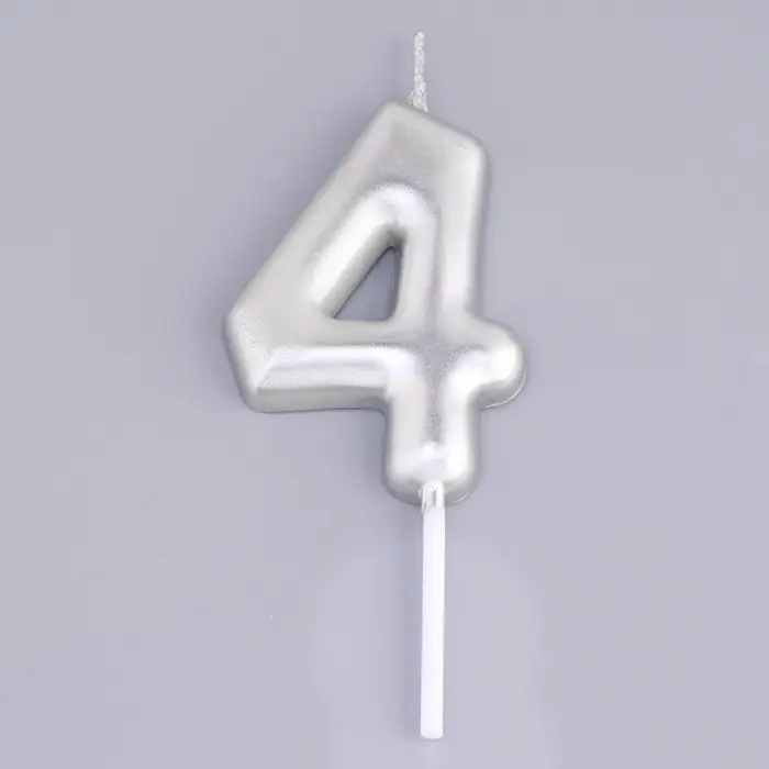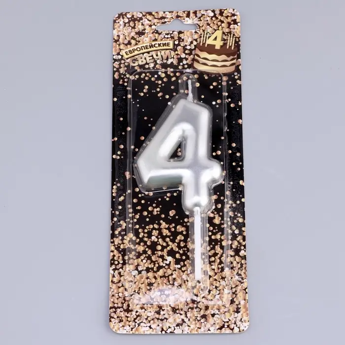 Свеча в торт «Европейская», цифра 4, 6 см, серебро