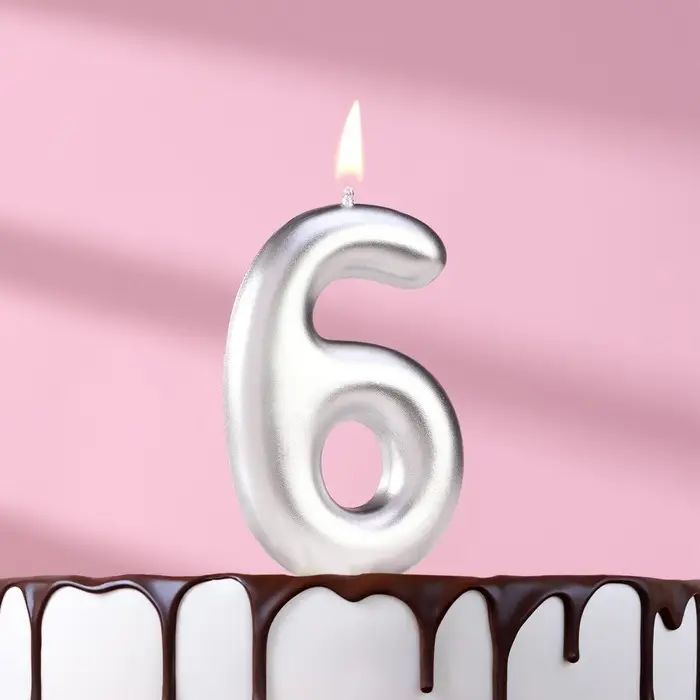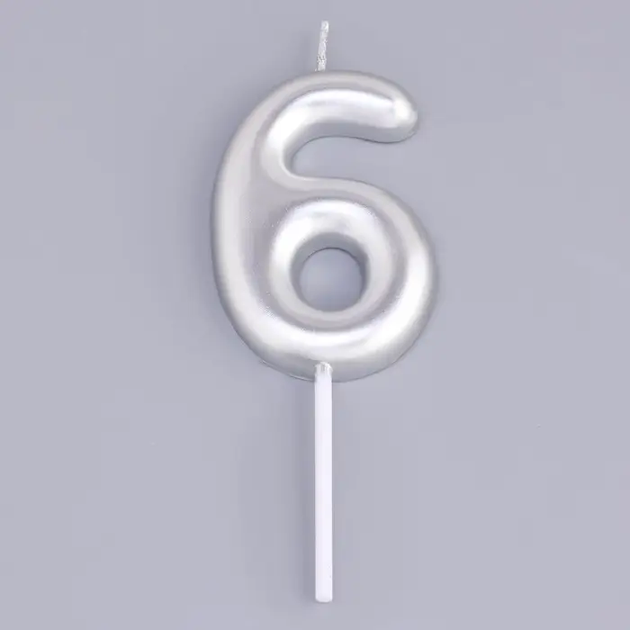 Свеча в торт «Европейская», цифра 6, 6 см, серебро