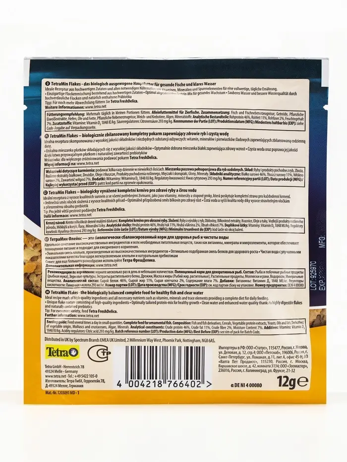 Корм TetraMin для рыб, хлопья, 12 г
