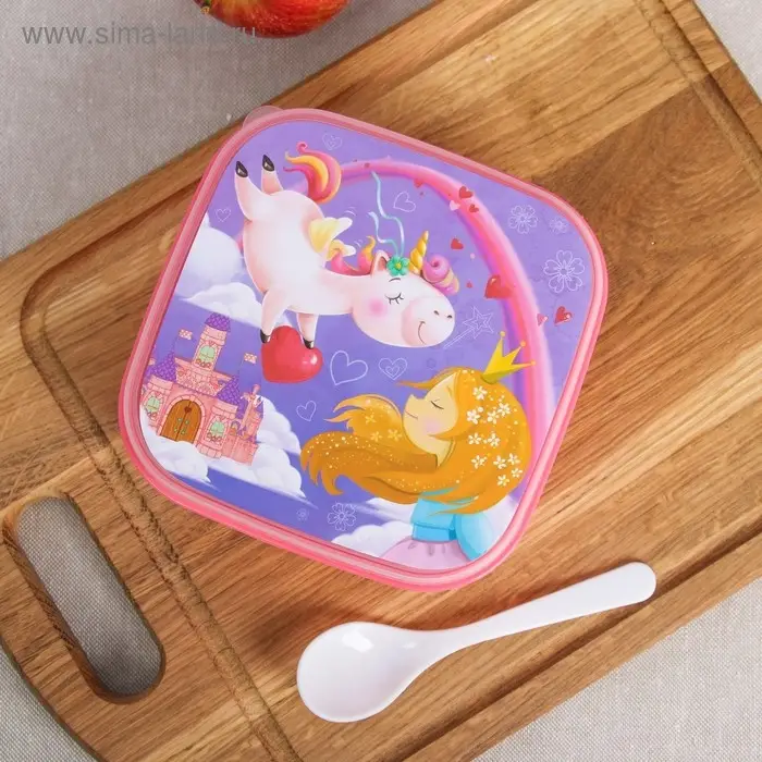 Ланч - бокс квадратный с секциями и ложкой «Единорог», 400 мл