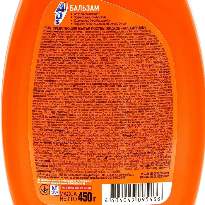 Состав:5% или более, но менее 15%: анионные ПАВ; менее 5%: неионогенные ПАВ, ароматизирующая добавка (в т.ч. лимонен), соль этилендиаминтетрауксусной кислоты, алоэ вера гель, регулятор рН, консервант, красители