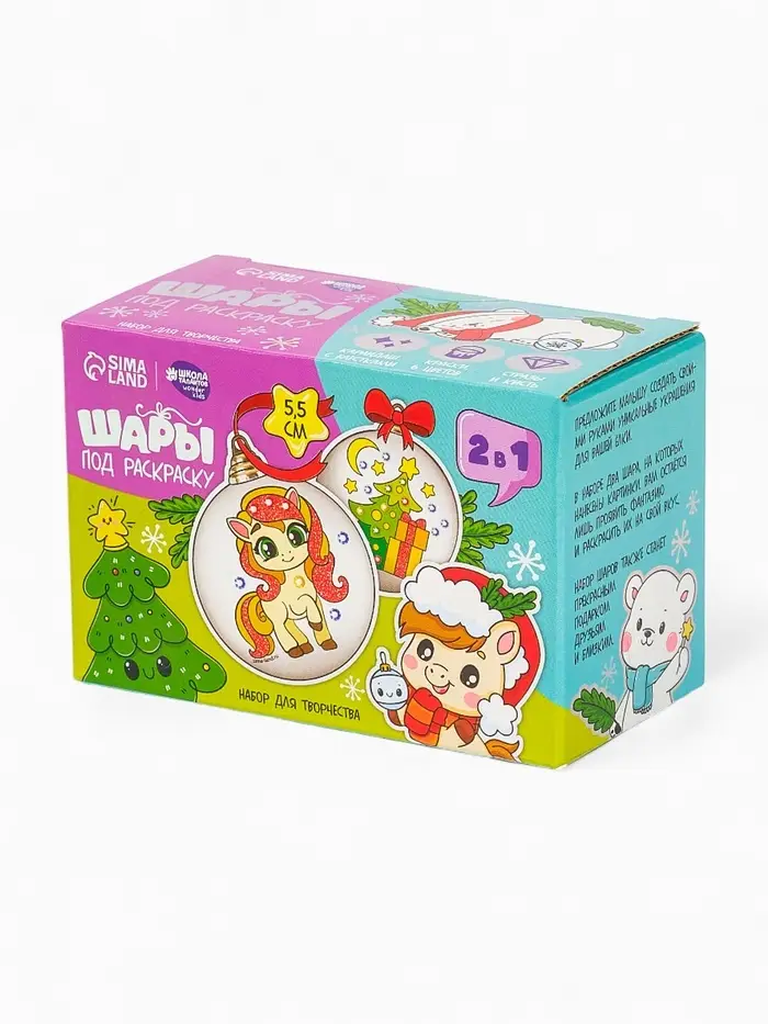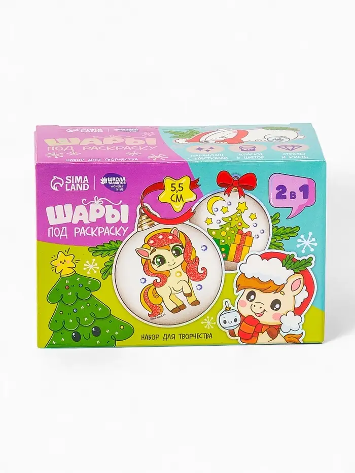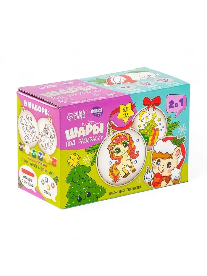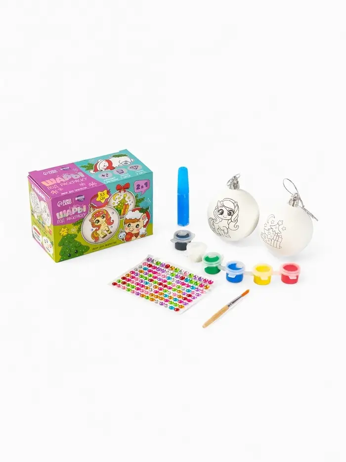 Набор для творчества «Елочные шары под раскраску »Волшебство« + краски, 2 шт.