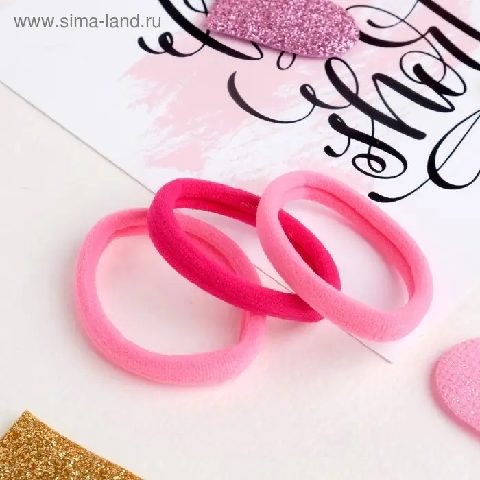 Резинка для волос "Трио" (набор 3 шт) единорог, 5,5 см, розовый