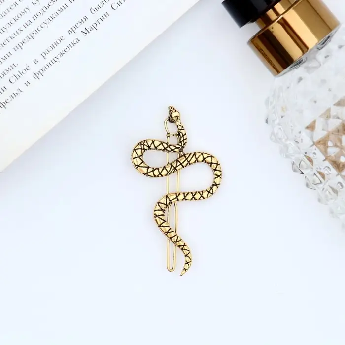 Зажим для волос "Змейка" 6 см, золото