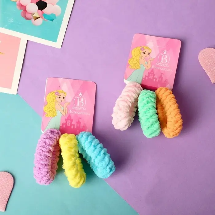 Резинка для волос "Спорт" (набор 3 шт) завитушки, 4 см, микс