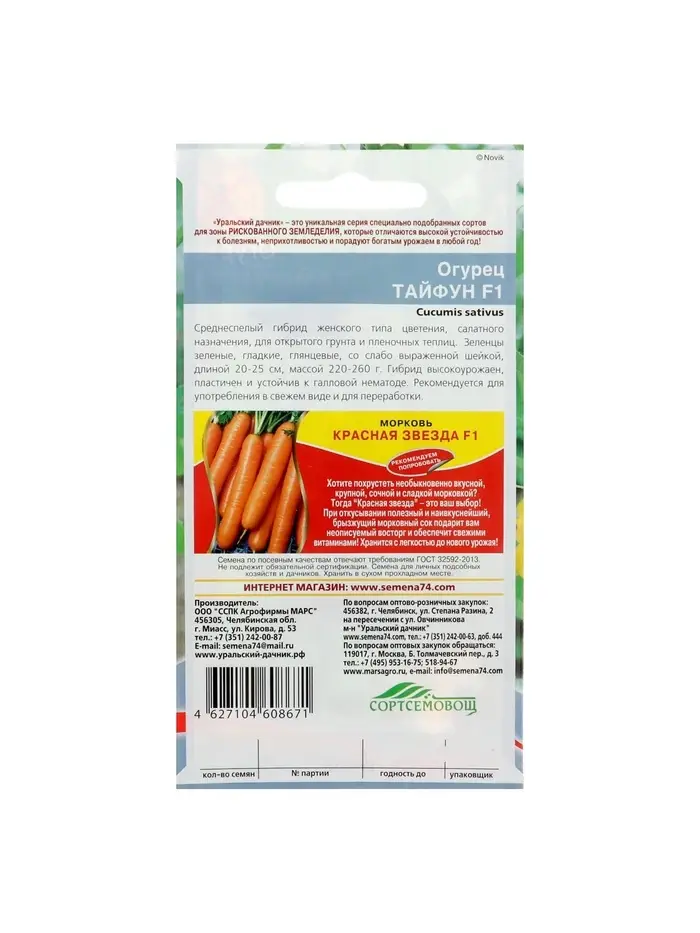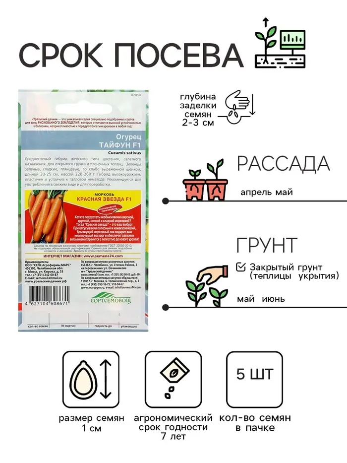 Семена Огурец "Тайфун" F1, раннеспелый, партенокарпический, 5 шт